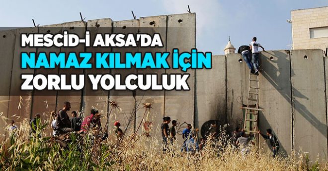 Ayrım Duvarı’nın çeşitli yerlerine merdiven dayayan ve tırmanan gençler, Aksa’da bir vakit namaz kılmak için zorlu yolculuğu göze alıyor. Bununla kalmayıp zaman zaman düşme ya da İsrail askerlerine yakalanma tehlikesi de yaşıyorlar.