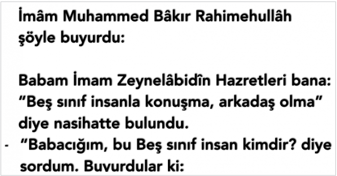 İmâm Muhammed Bâkır Rahimehullâh şöyle buyurdu: