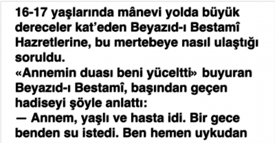 16-17 yaşlarında mânevi yolda büyük dereceler kat’eden Beyazıd-ı Bestamî Hazretlerine, bu mertebeye nasıl ulaştığı soruldu.... -
